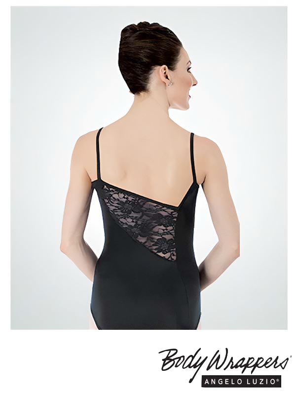 P223 Asymmetrical Lace Insert Camisole Leotard